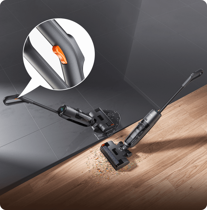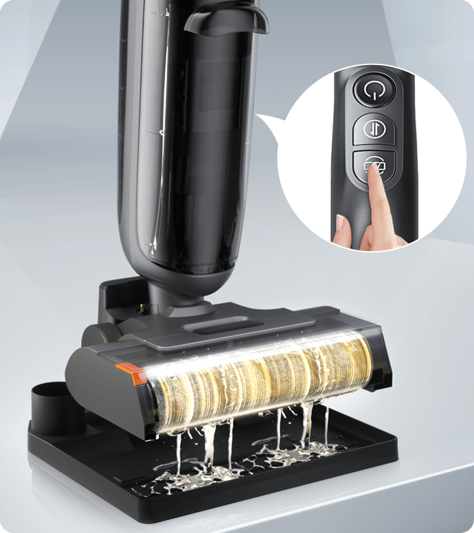 With a single button, you can control and adjust the water output as needed, seamlessly switching between dry vacuuming and wet mopping to tackle all types of stains with precision and efficiency.