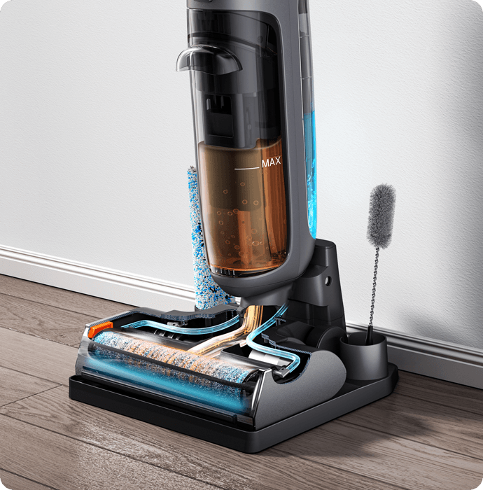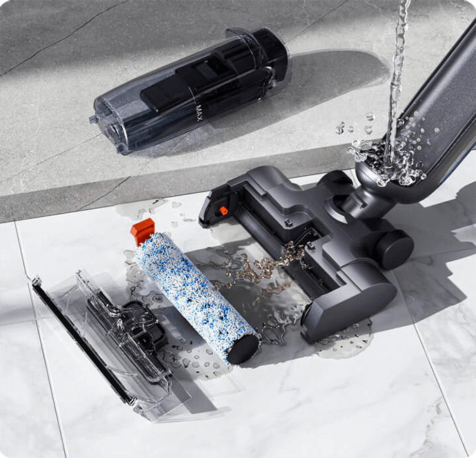 Start a quick self-cleaning cycle with a single press — it removes dirt, hair from the roller and tubes, hands-free and hassle-free. Just empty the dirty water tank afterward to prevent odors.